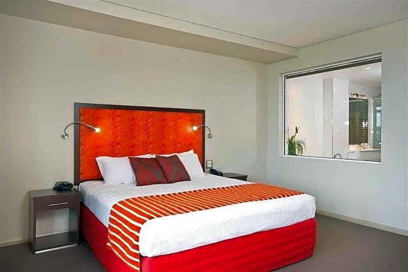 Larger room with double sofa bed, spa bath and private balcony with town center views.